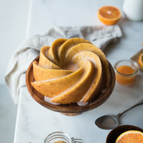 Je ne vous apprends rien si je vous dis qu'on est pile dans la pleine saison des agrumes, n'est-ce pas ? L'autre jour, sur le marché je suis tombée sur ces jolies oranges bio, j'avais envie de les utiliser, non pas pour un jus, mais en gâteau pour le petit-déjeuner et le goûter. À l'origine, ces belles oranges sont censées être des oranges sanguines - mais j'ai bien vite constaté que je devrais me passer de leur belle couleur rouge ! Cela ne change pas grand chose à ma recette, vous pouvez utiliser soit des oranges classiques, soit des oranges sanguines. J'ai donc décidé de réaliser ce Bundt cake à l'orange & son glaçage à l'orange, le glaçage est un petit plus qui le rend encore plus moelleux et parfumé (même si ce bundt cake l'est déjà beaucoup).