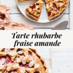 I love using almonds in tarts, they add a touch of sweetness to all fruits! It goes very well with rhubarb (to counter its acidic side) and with strawberries (to accentuate its sweet finesse). To make this rhubarb strawberry tart, nothing very complicated. I advise you to make the dough in advance (it can be frozen), it will only be faster on the big day.