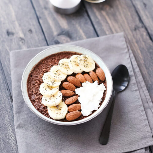 J'adore aussi la gourmandise du chocolat en pépites bien entendu ! On peut aussi le râper ou le concasser plus grossièrement. J'aime bien aussi ajouter de la noix de coco râpée.