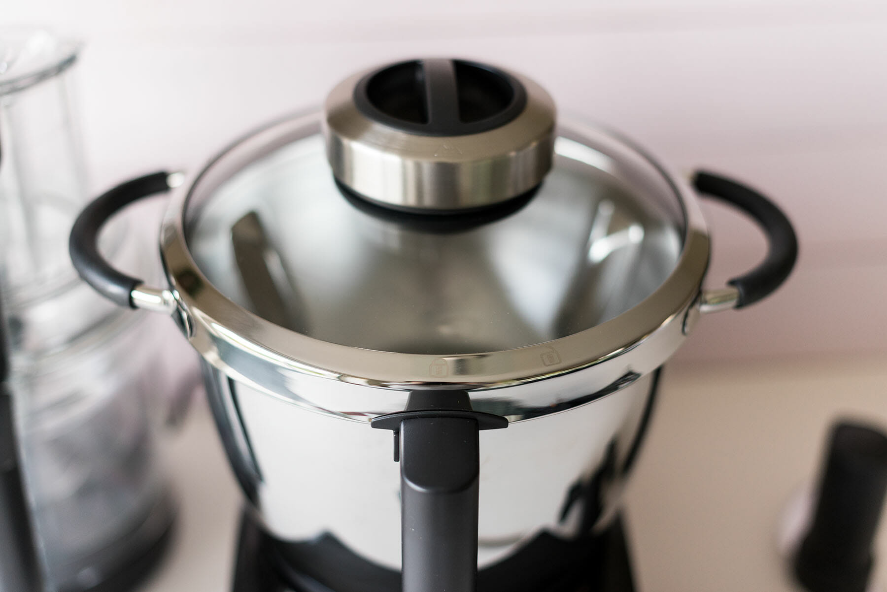 Deuxième point positif, la simplicité d'utilisation du robot et de ses accessoires : on clipse, on programme, on déclipse, et voilà ! Mention spéciale à la finition des outils en inox brossé (même la maryse) haut de gamme qui s'intègre bien en cuisine.