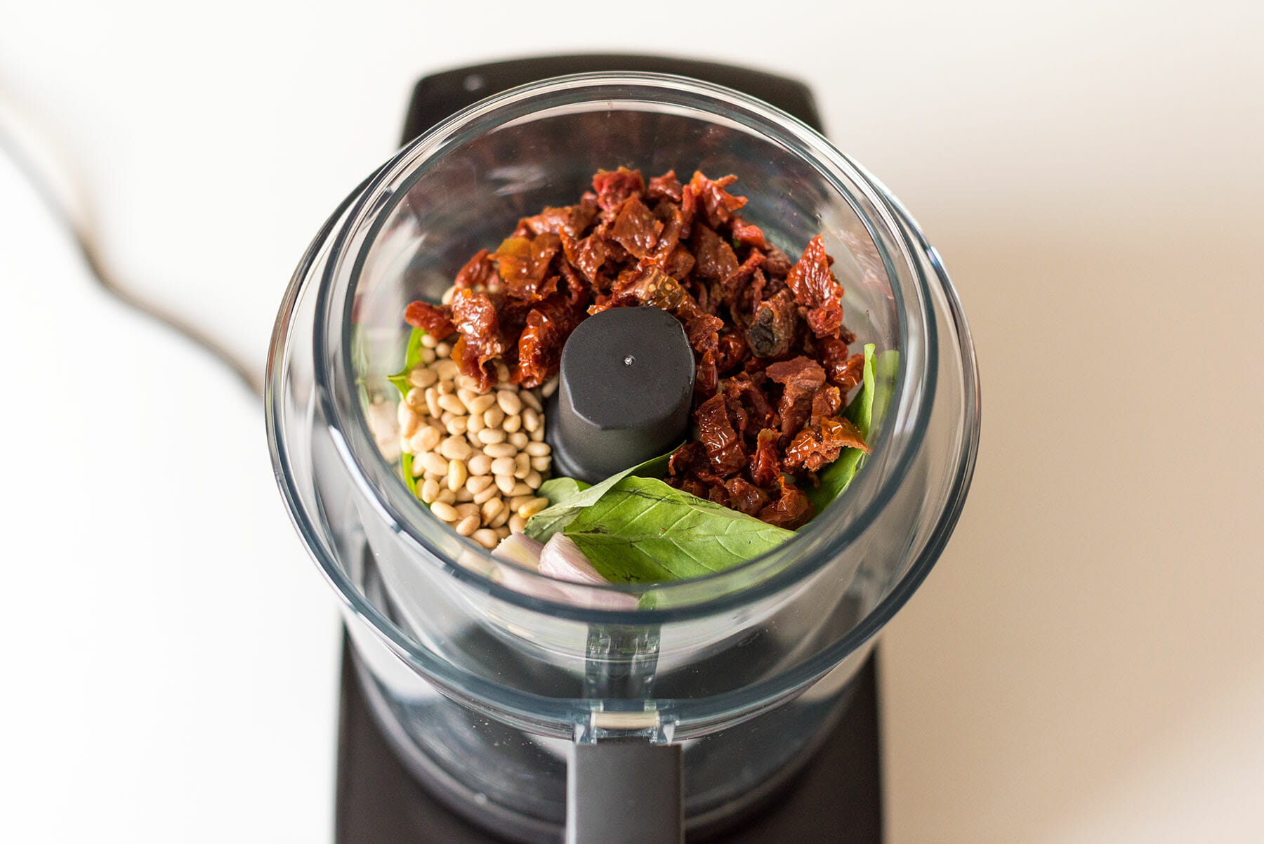 L'avantage d'un robot, et là je m'en suis rendue compte, c'est qu'on verse les ingrédients, et puis c'est lui fait le reste ! Que ce soit pour la pâte à scones (parfaitement homogène) ou pour la polenta (cuite en quelques minutes) c'est simplissime. Pour le pesto rosso, il en était de même, tout dans le mixeur et en quelques instants on obtient un pesto crémeux à souhait.